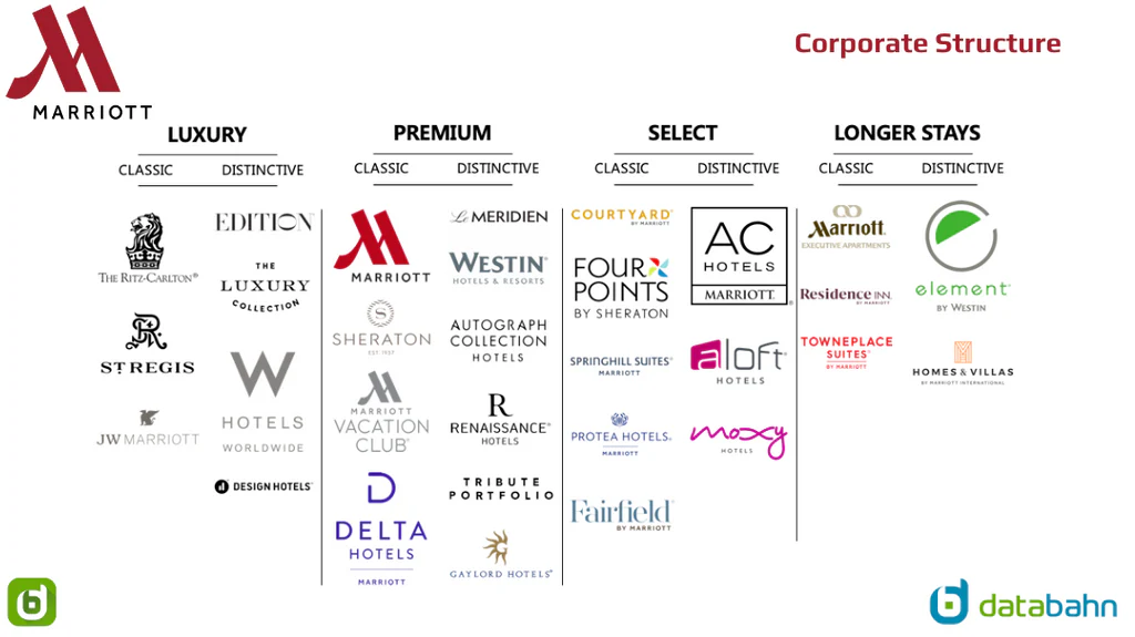 Marriott Bonvoy spans over 30 hotel brands, and each brand generally aligns with certain category levels. For example: